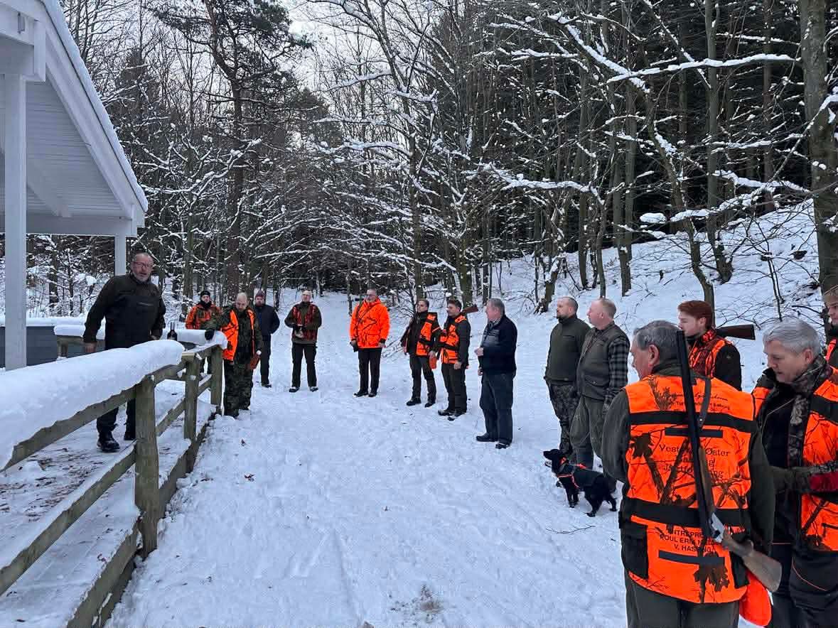 Vi var lidt spændte på om vi var i stand til af afholde jagt i dag, da der var varslet meget sne og fygning i løbet af ugen. Men netop lørdag var der udsigt til en kold og solrig dag og derfor kom der godt gang i tilmelding til jagten torsdag/fredag. Så jægerne mødte talstærkt op fra morgenstunden, så vi kunne nyde morgenbrødet i ro og mag.