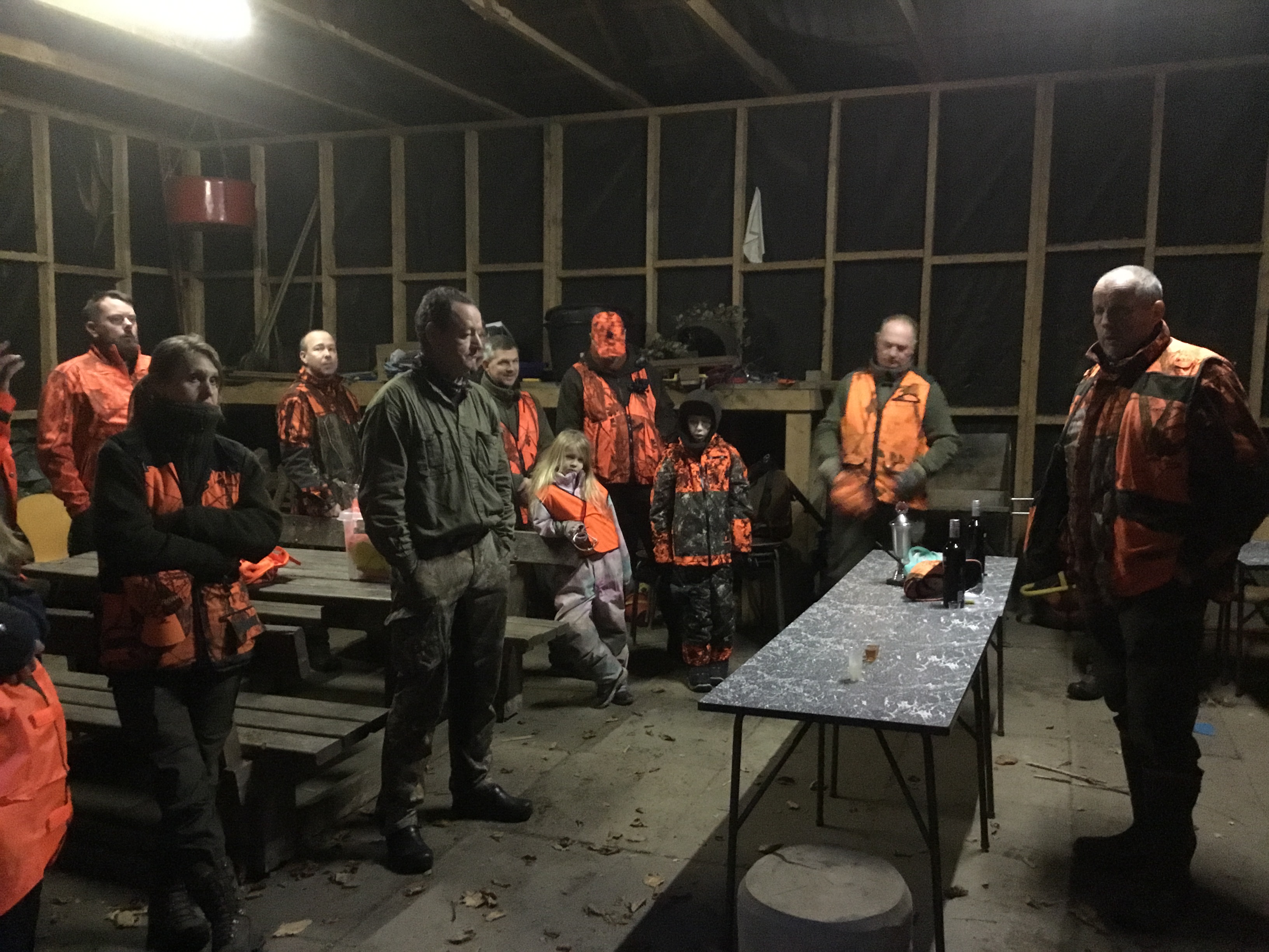 På fællesjagten den 13 december var der mødt 13 medlemmer og 3 gæstejægere op. Vi havde også 8 juniorjægere og forældre med fra Aalborg og Omegns Jagtforening, nogen af forældrene havde taget gevær med. Der var regn da vi mødte op til det obligatoriske morgenbrød, men da vi startede jagten var der kun få regndråber tilbage i luften.