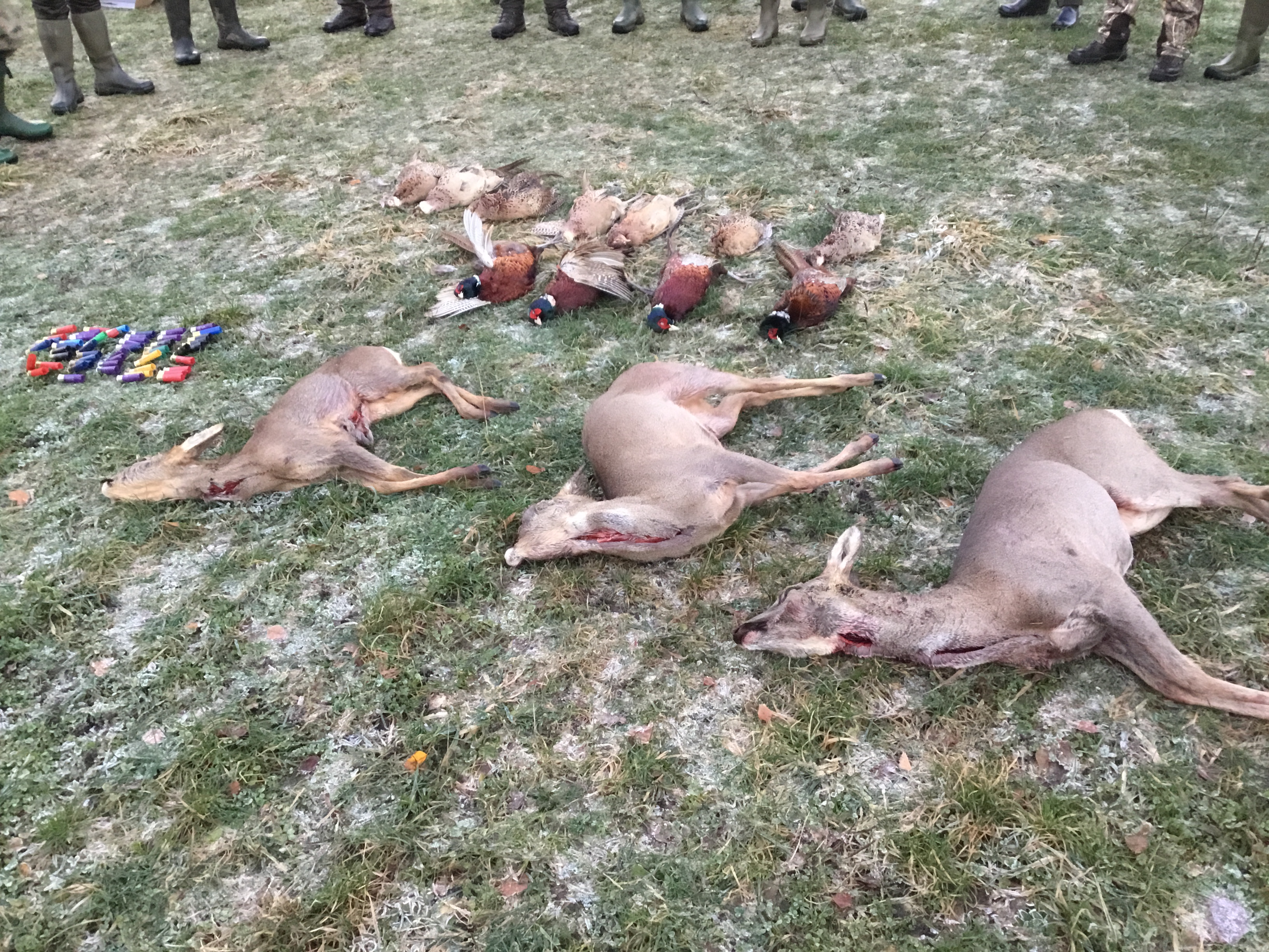 På paraden lå der så de 3 rådyr og 11 fasaner, der alle blev nedlagt på Melholtvej. Vildtet blev herefter solgt på auktion. Vinder af dagens bengæt ( 35 ) og 55 skud blev Sune der var en af gæstejægerne.