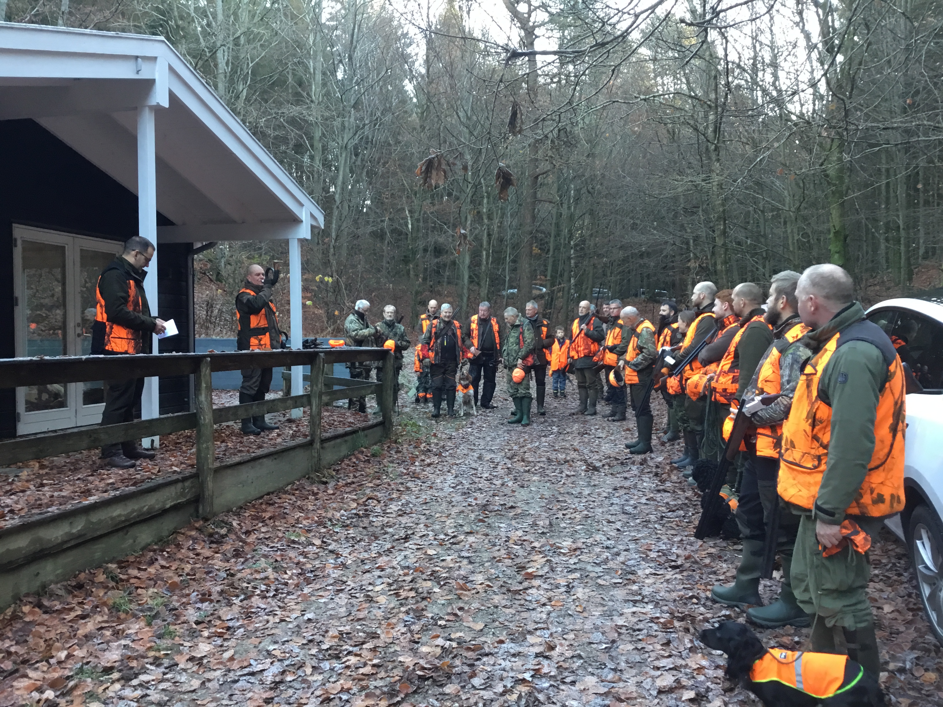 Kl. 9.00 blæste Jesper til samling på jagthornet. Dagens jagtleder Christian Brynje bød velkommen til dagens jagt og gennemgik hvilke såter vi skulle drive af i dag. Der måtte skydes hvad jagtloven tillader. Sikkerheden blev også indskærpet, om ikke at at afgive for lave skud ind i såten.