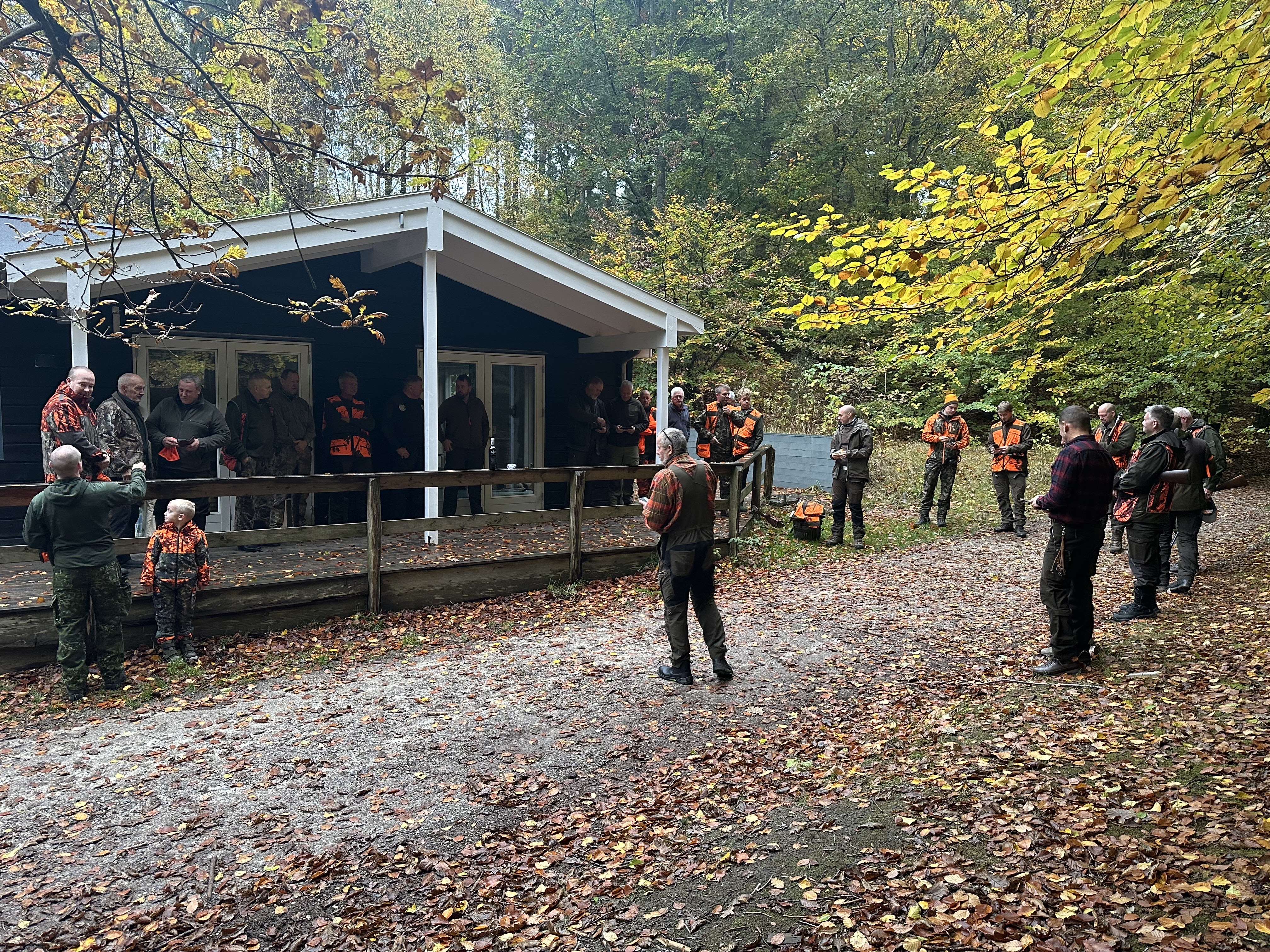 Endnu en gang dannede Aslund Hytten den perfekte ramme om starten på dagens jagt. Allerede fra morgenstunden var der høje forventninger og en herlig stemning, da 26 jægere mødtes til rundstykker og kaffe. Vi havde ikke mindre end 7 hunde med, som var ivrige for at komme i gang.